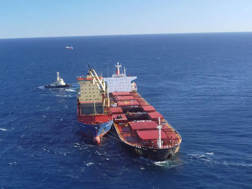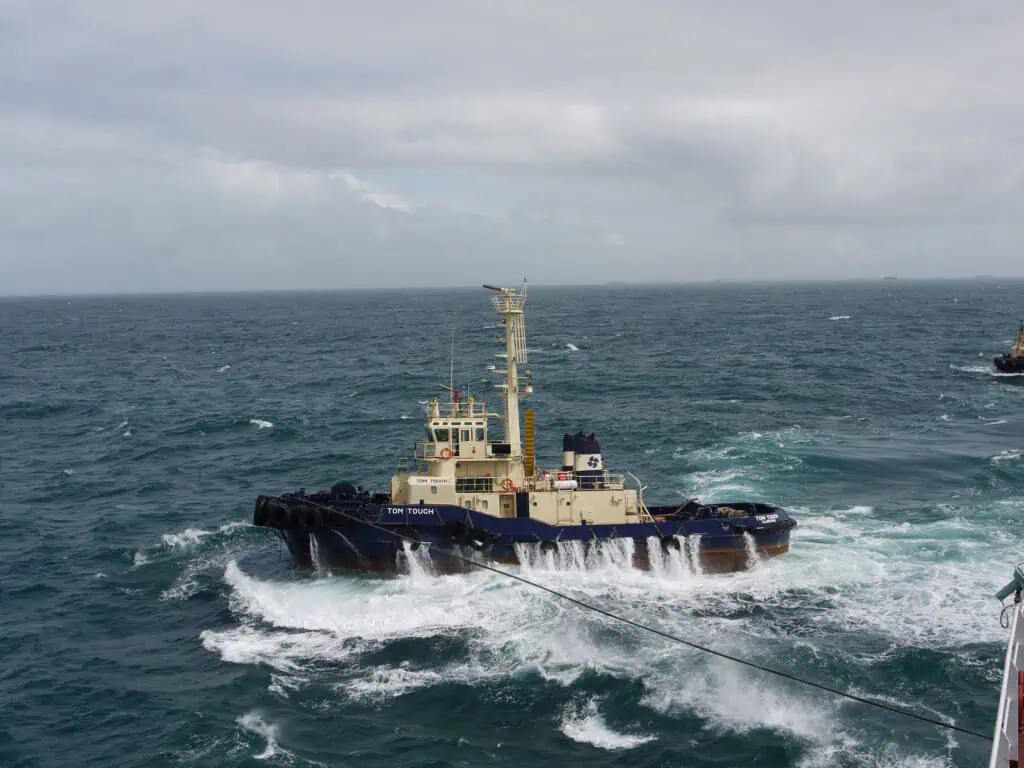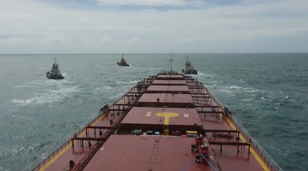 The Shen Neng 1 being towed to safety. Photo: TMR.